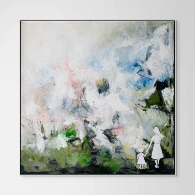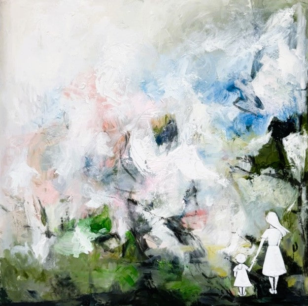 A moment capturing the connection between female forms (can be interpreted as a mother and daughter or a younger and older version of self).