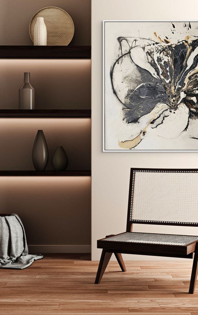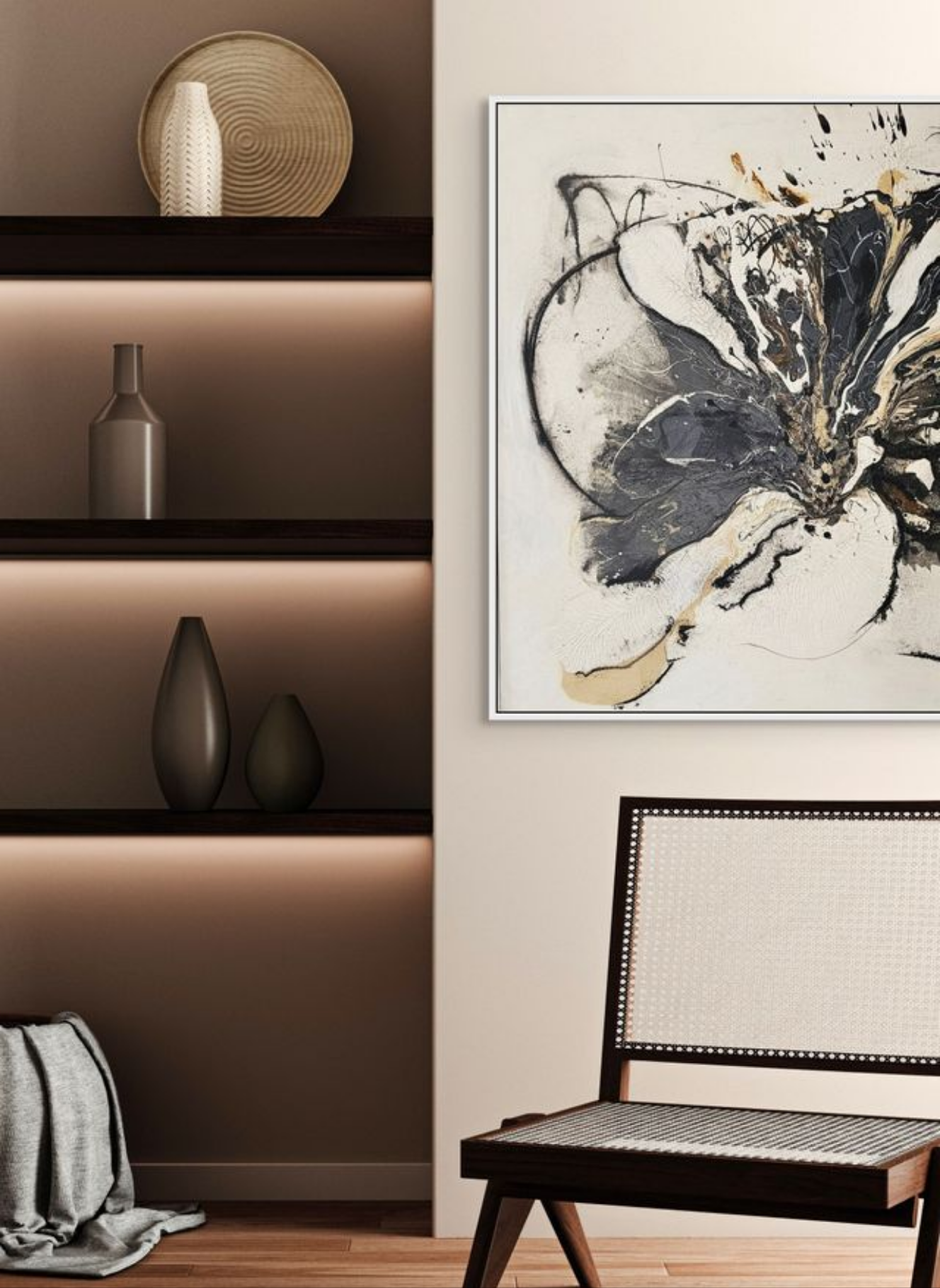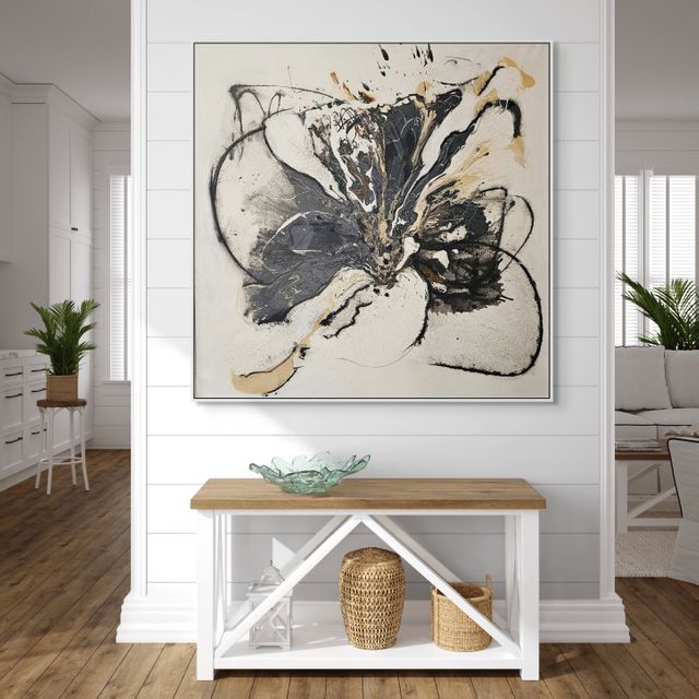 Make a Splash captures a moment of dynamic energy and elegant restraint. Created with mixed media in white and neutral tones, this abstract work evokes the form of a blossoming flower or an expressive splash, frozen in motion.