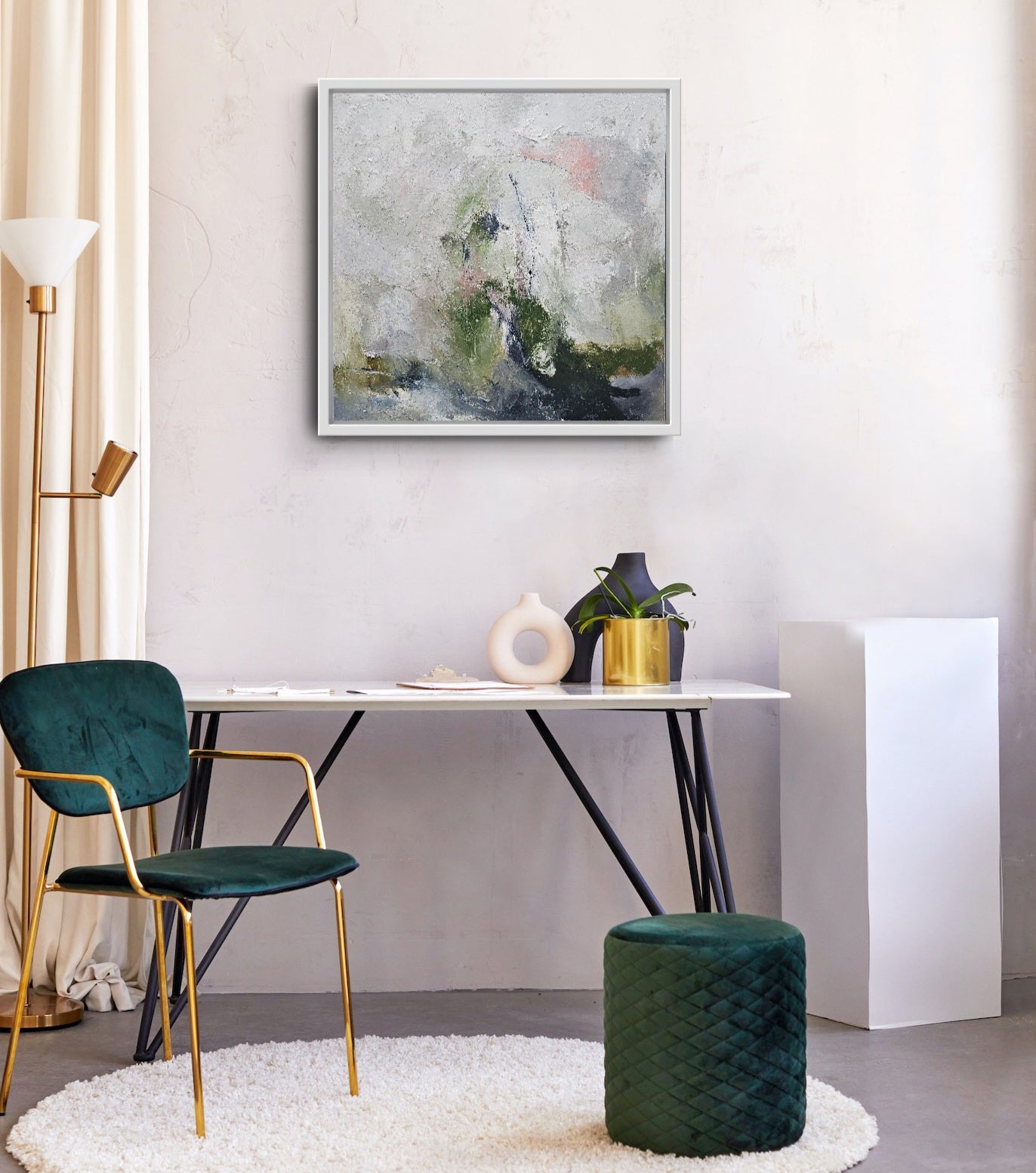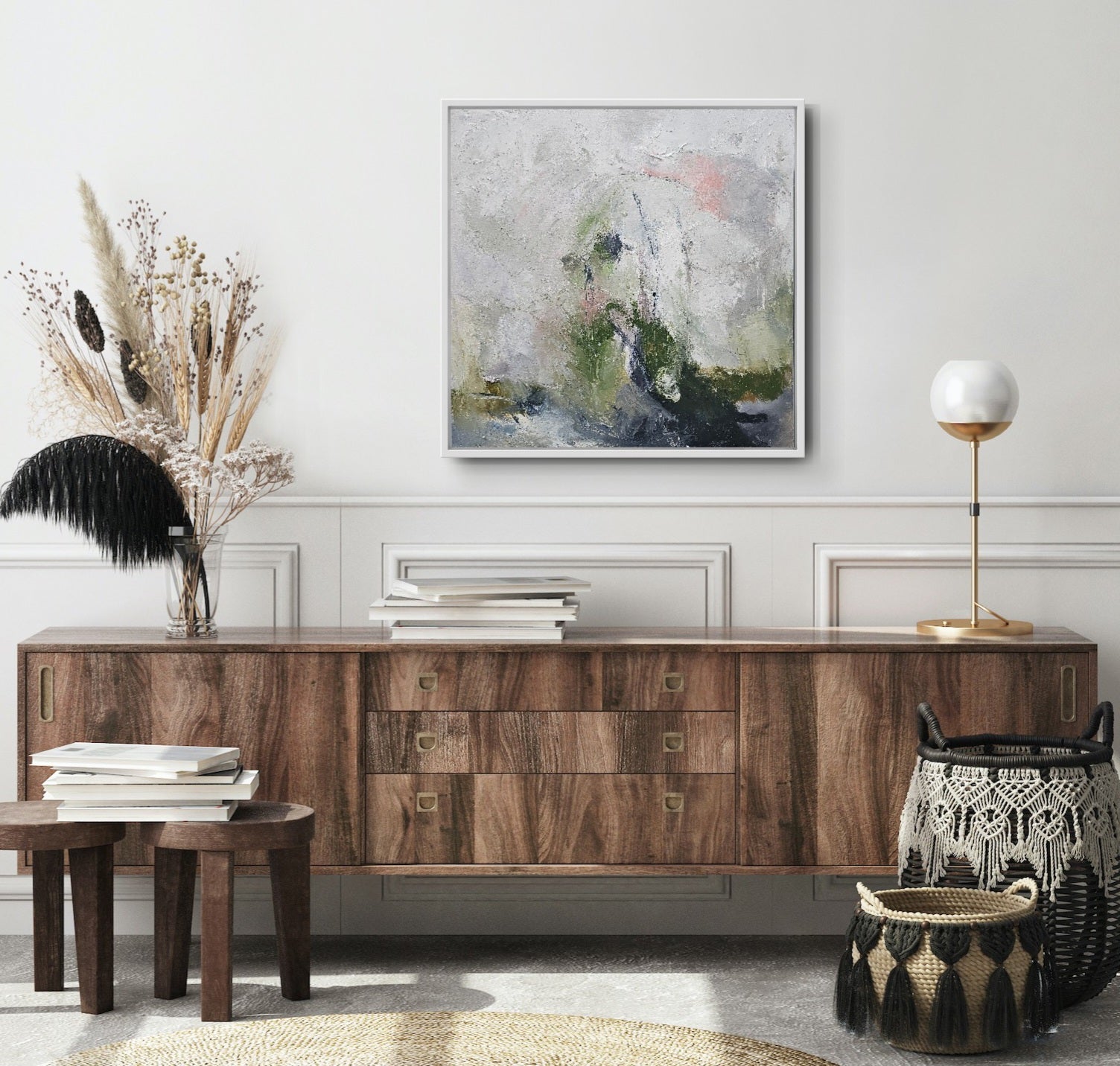 Oilpaint on canvas framed in white timber